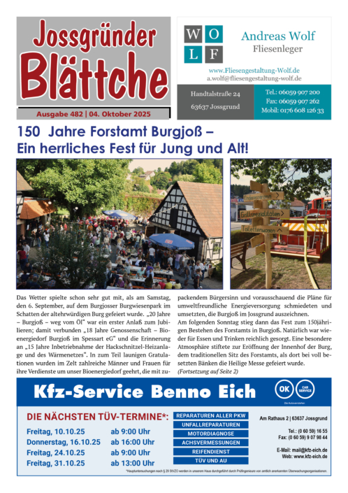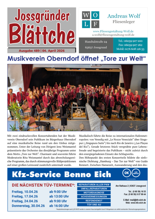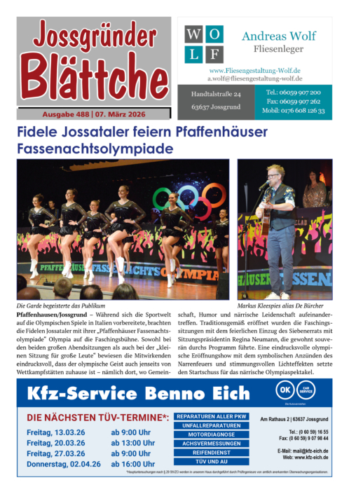 Sie haben die letzte Ausgabe des Jossgründer Blättche verpasst oder möchten in einer älteren Ausgabe etwas nachlesen? Kein Problem!